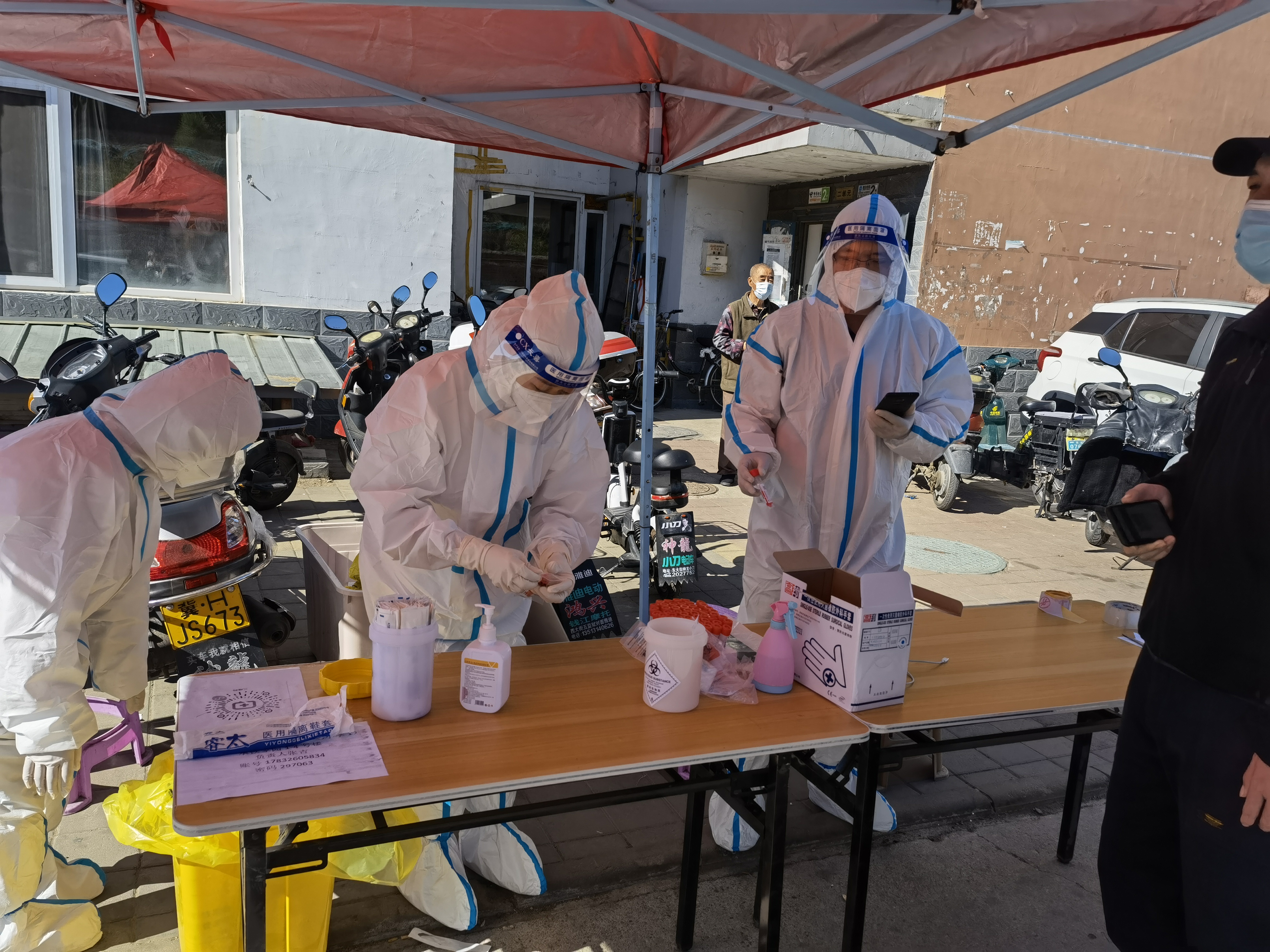 “哪里有需要,就到哪里去!”5月11日12点,得知会龙山四期及会龙山隧道工地有230余名工人尚未进行核酸检测后,王晓峰、焦健等同志不推脱,不抱怨,穿上了刚刚脱下的防护服,与医务人员奔赴工地,对230余名工地工人全员进行了核酸检测,用实际行动展现国企党员、志愿者的使命担当!