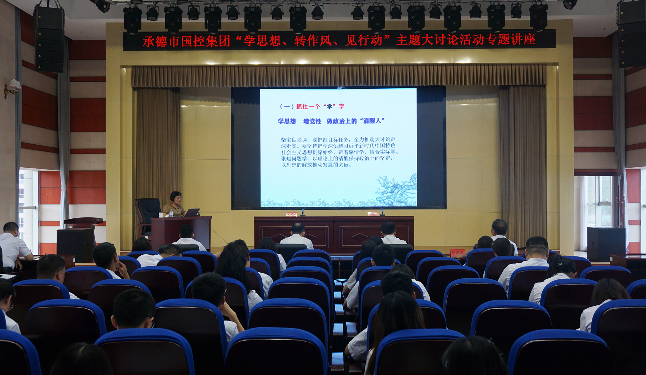 2023年7月6日,为深入学习贯彻习近平总书记关于坚持不懈抓好作风建设的重要论述,落实市委市政府关于在全市开展“学思想、转作风、见行动”主题大讨论活动精神,市FH网页版_FH(中国)邀请承德市委党校党史党建教研室主任王仲娟教授,开展了“学思想、转作风、见行动”主题大讨论活动专题讲座,市FH网页版_FH(中国)领导班子、集团本部全体员工、实际控制子公司中层以上负责同志及党员员工参加讲座。